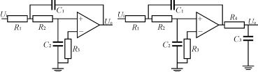 取ωc=2πf=4000π時,可得R1=0.68kΩ,R2=10kΩ,C1=0.1μF,C2=0.01μF。實際截止頻率為1930Hz。