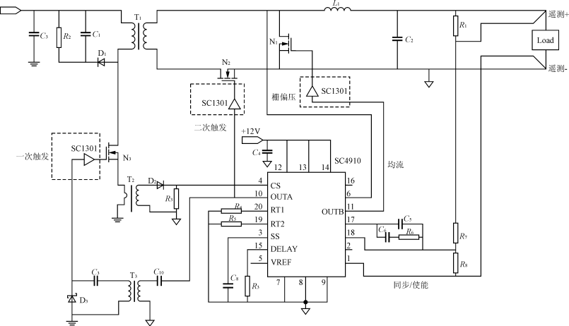 圖5 SC4910應(yīng)用電路(集成次級同步整流,次級PWM控制,負(fù)載均流)