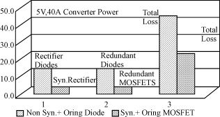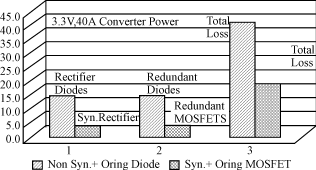 首先,對傳統(tǒng)二極管整流cPCI電源(Non Syn)和同步整流cPCI電源(Syn.)作定量損耗分析。表4列出了二者所選擇的一些功率器件。