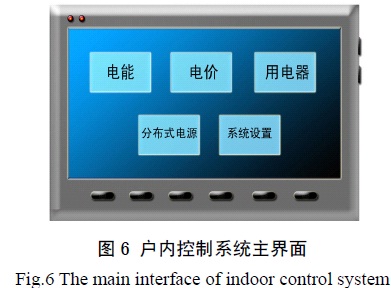 圖6 為模擬的戶內(nèi)控制系統(tǒng)主界面,它包含有電能、電價、用電器、分布式發(fā)電等模塊。戶內(nèi)控制系統(tǒng)將接收到的用電信息經(jīng)過處理,以圖表的形式直觀的展現(xiàn)出來。用戶根據(jù)自身情況調(diào)整用電方案,用電器模塊能夠?qū)Ω饔秒娖鞯拈_關(guān)進行定時管理。