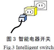 圖3 即為智能電器開關(guān)示意圖,它是一個連接用電器和電源的中間設(shè)備,由于現(xiàn)階段電器的智能化尚無法滿足構(gòu)建戶內(nèi)智能網(wǎng)絡(luò)的要求,因此可將智能電器開關(guān)看作一種過渡型器件。