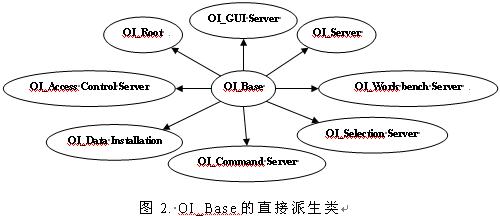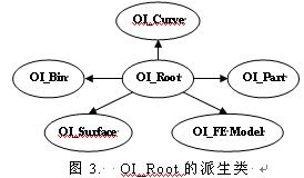??? 存儲斗接口,零件接口,曲線接口,表面接口,有限元模型接口都從OI_Root接口派生而來,其派生關(guān)系見下圖。