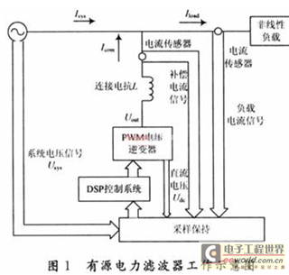 隨著用電設(shè)備類型的日益增多,出現(xiàn)了很多非線性負(fù)載,此類負(fù)載在運(yùn)行過(guò)程中,產(chǎn)生大量的高次諧波,這些諧波對(duì)于電網(wǎng)中的電力設(shè)備有著很強(qiáng)的危害,因此供電部門(mén)對(duì)于諧波的注入量有著嚴(yán)格的限制。有源濾波器的設(shè)計(jì)思路是向電路注入除基波電流以外的電流,從而抵消系統(tǒng)中原有的諧波電流,使得系統(tǒng)電流中只有需要的基波電流。不同于并網(wǎng)逆變器,有源電力濾波器本身發(fā)出的電流為非正弦波形。這就意味著應(yīng)用傳統(tǒng)的數(shù)字信號(hào)處理算法消除噪音的方法在這里不完全適用,而實(shí)際應(yīng)用中來(lái)自外部的干擾極大地影響了系統(tǒng)的運(yùn)行。在此重點(diǎn)討論電流傳感器的選擇和采樣調(diào)理電路的設(shè)計(jì),從而使得.由于這兩者的非理想性對(duì)系統(tǒng)的影響最小。