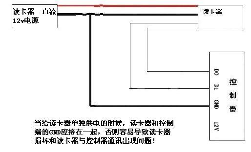 2、給讀卡器單獨(dú)供電的時(shí)候注意讀卡器和控制器之間的接地如下圖: