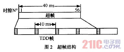 由于需要將中心式結(jié)構(gòu)的UTRA.TDD應(yīng)用到分布式系統(tǒng)中,所以要在很多方面做出調(diào)整和改進(jìn)。首先對(duì)MAC層的幀結(jié)構(gòu)進(jìn)行重新設(shè)計(jì),每一幀的時(shí)長(zhǎng)為10ms,每一幀由15個(gè)時(shí)隙構(gòu)成,每4幀又構(gòu)成一個(gè)超級(jí)幀,如圖2所示。