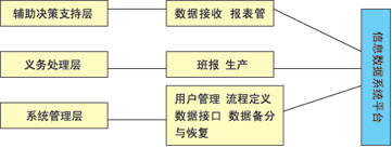 業(yè)務(wù)處理層是綜合管理信息系統(tǒng)的直接業(yè)務(wù)處理過(guò)程,建立管理體制和運(yùn)行機(jī)制,強(qiáng)化監(jiān)督管理;業(yè)務(wù)處理層包括班報(bào)、日?qǐng)?bào)、月報(bào)、年報(bào)、生產(chǎn)數(shù)據(jù)、成本核算等功能模塊。
