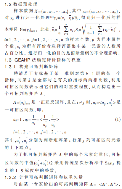 高潔等人在層次分析法AHP(Analytical Hierarchy Process)的基礎(chǔ)上,結(jié)合可拓集合理論,提出可拓層次分析法EAHP(Extension Analytical Hierarchy Process)[1]。利用該方法可以解決在相對(duì)重要性程度不確定時(shí),如何構(gòu)造AHP判斷矩陣。由于在利用EAHP構(gòu)造判斷矩陣時(shí),涉及到判斷矩陣的集結(jié)問題,參考文獻(xiàn)[1]中給出的是利用算術(shù)平均法對(duì)不同專家的判斷矩陣進(jìn)行集結(jié)。這種方法實(shí)際上認(rèn)為專家組中每個(gè)專家的權(quán)重是相等的。