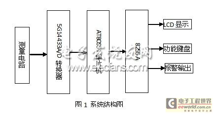 基于單片機的室內(nèi)甲醛測試儀由單片機系統(tǒng),顯示電路,功能鍵盤,甲醛傳感器,測量電路及3位半雙積分A/D轉(zhuǎn)換器,報警輸出電路構(gòu)成。系統(tǒng)結(jié)構(gòu)如圖1所示: