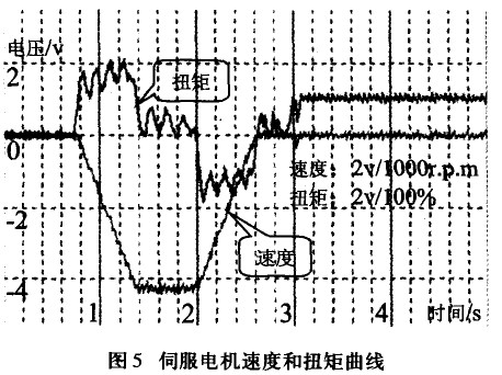 圖5是伺服電機(jī)的速度曲線和扭矩曲線。從圖中可以看到,第一階段對(duì)電機(jī)進(jìn)行速度控制,電機(jī)轉(zhuǎn)速響應(yīng)很快,轉(zhuǎn)速由0增加到2000r/m的過程十分平穩(wěn)。第二階段對(duì)電機(jī)進(jìn)行扭矩控制,電機(jī)由0增加到50% 的額定扭矩響應(yīng)很快,也沒有出現(xiàn)大的波動(dòng)。表明按照這個(gè)方法進(jìn)行調(diào)試是可行的,完全能夠滿足自動(dòng)化生產(chǎn)線的需要。