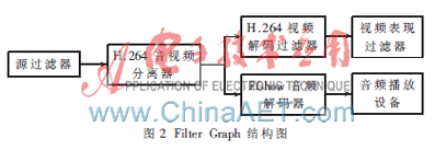 由于微軟公司推出的Directshow沒有提供H.264的視頻解碼器。因此本文還需要使用ffmpeg中提取出的、經(jīng)過優(yōu)化的H.264視頻解碼組件。