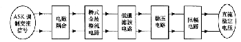 接收部分主要的功能是將天線上接收到的ASk幅度調(diào)制信號進行解調(diào),恢復(fù)出數(shù)字基帶信號,再送到控制 部分進行解碼處理。接收部分主要由包絡(luò)產(chǎn)生電路和檢波電路組成。功能框圖如圖2所示。