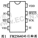 FM25640的引腳圖如圖1所示。各引腳的具體功能如下: