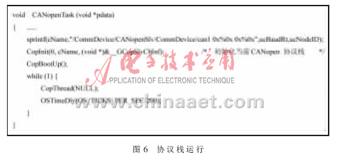 實(shí)現(xiàn)實(shí)例:圖6展示了如何啟動(dòng)CANopen協(xié)議棧并使之處于運(yùn)行狀態(tài)。