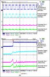 圖8A和8B. 脈沖(80V,120ms,OEM#5)作用在保護(hù)器" title="保護(hù)器">保護(hù)器的輸入, MAX5073連接在保護(hù)器的輸出,監(jiān)測(cè)轉(zhuǎn)換器的第1路和第2路輸出。