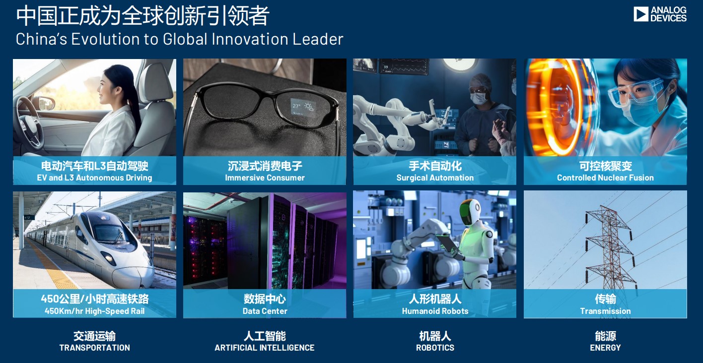深耕中國三十載,ADI 早已將自身發(fā)展與中國產(chǎn)業(yè)創(chuàng)新深度綁定,中國市場不僅是ADI全球的重要增長極,更成為其探索智能自主時代技術(shù)、場景、生態(tài)的核心試驗場與落地陣地。如今的中國,正從全球制造中心向創(chuàng)新中心邁進(jìn),在智能汽車、數(shù)據(jù)中心、機(jī)器人、電池等領(lǐng)域引領(lǐng)全球發(fā)展,高鐵、電力等基礎(chǔ)設(shè)施的建設(shè)奇跡,為智能自主時代奠定了堅實基礎(chǔ);可控核聚變、人形機(jī)器人等前沿探索,更讓中國成為智能自主時代的重要引領(lǐng)者。而這一切,正好和ADI的技術(shù)布局高度契合,也讓ADI得以深度參與中國的創(chuàng)新浪潮中。