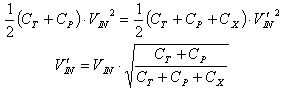 我們先假設(shè)某些合理值,例如(CT + CP) = 5pF,CX = 0.5 pF。根據(jù)上面的公式計算,輸入電壓將下降到95%!