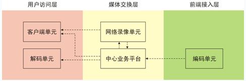 ??? 科達(dá)ViewShot網(wǎng)絡(luò)視頻監(jiān)控系統(tǒng)在邏輯結(jié)構(gòu)上分為前端接入、媒體交換以及用戶訪問三個層次,具體由中心業(yè)務(wù)平臺" title="業(yè)務(wù)平臺">業(yè)務(wù)平臺、網(wǎng)絡(luò)錄像單元、編碼單元、解碼單元和客戶端" title="客戶端">客戶端單元等設(shè)備組成。如圖1所示。