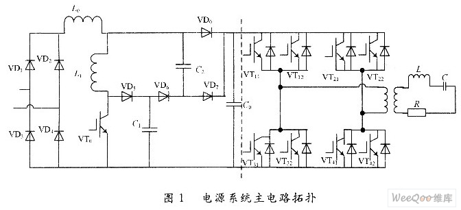 單相整流橋輸出的直流電壓接入無(wú)源緩沖軟開(kāi)關(guān)Boost電路,本文采取Boost電路取代傳統(tǒng)的LC濾波電路。這里Boost電路主要有2個(gè)作用:一是提高整流輸入側(cè)的功率因數(shù);二是為逆變側(cè)提供一個(gè)穩(wěn)定的直流電壓。Boost校正電路輸出直流電壓加到逆變橋上,逆變橋是由8個(gè)IGBT模塊組成的單相全橋逆變器,每個(gè)IGBT都有一個(gè)反并聯(lián)二極管與其并聯(lián),作為逆變器電壓反向時(shí)續(xù)流。逆變器*率器件由控制電路控制脈沖信號(hào)驅(qū)動(dòng)而周期性的開(kāi)關(guān);隔離變壓器T的作用是電氣隔離和負(fù)載的阻抗匹配。一般T為降壓變壓器,適當(dāng)改變變壓器的變比即可降低諧振槽路中電感、電容上的電壓值,并可進(jìn)行不同的負(fù)載阻抗匹配。輸出方波電壓經(jīng)過(guò)變壓器的隔離降壓后加到由補(bǔ)償電容器和感應(yīng)線圈及負(fù)載組成的諧振回路上。