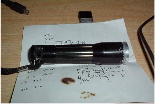 前幾天在白鶴市場買了只12元的8LED電筒(用一節(jié)5#電池),當(dāng)時有急事沒試試,回家一看,用充電電池幾乎發(fā)不出光來,用1.5V的堿性電池亮不了一分鐘就滅了,真是很生氣。