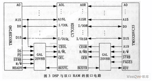 2.2 DSP與雙口RAM的接口設(shè)計(jì)