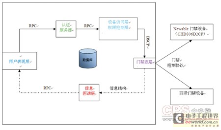 門禁中間件模塊由三個(gè)部分組成,分別為設(shè)備控制模塊、權(quán)限控制模塊、信息回調(diào)模塊。從門禁工作流程的角度分析,二次開發(fā)首要任務(wù)是對(duì)門禁設(shè)備、門禁用戶、IC卡、指紋信息進(jìn)行封裝,形成一套用戶定制的增、刪、改、查流程,并完成發(fā)卡或指紋授予的工作(即用戶與IC卡、指紋綁定)。以上數(shù)據(jù)中,只有卡號(hào)和門禁地址作為設(shè)備控制模塊和權(quán)限控制模塊的接口參數(shù)。接下來(lái),通過(guò)權(quán)限控制模塊提供的接口函數(shù),完成整個(gè)門禁的授權(quán)流程和工作模式配置流程。通過(guò)設(shè)備控制模塊和權(quán)限控制模塊的接口,應(yīng)用開發(fā)人員已經(jīng)完成了門禁的基本工作流。最后,針對(duì)用戶的要求,結(jié)合自己平臺(tái)的視頻特點(diǎn),通過(guò)信息回調(diào)模塊,捕捉開門事件、刷卡事件、報(bào)警事件等,和平臺(tái)其他功能相結(jié)合,達(dá)到二次開發(fā)的目的。整個(gè)開發(fā)過(guò)程中,應(yīng)用功能開發(fā)人員不需要關(guān)注門禁設(shè)備的具體型號(hào)和接入方式。唯一需要關(guān)注的是,客戶針對(duì)門禁這一傳統(tǒng)安防產(chǎn)品形態(tài),在安防監(jiān)控平臺(tái)上所提出的應(yīng)用要求。整個(gè)開發(fā)過(guò)程大規(guī)模降低了技術(shù)平臺(tái)對(duì)技術(shù)人員的依賴性,將開發(fā)過(guò)程模塊化、流水線化,是今后整個(gè)安防監(jiān)控平臺(tái)軟件的發(fā)展方向(如圖2所示)。