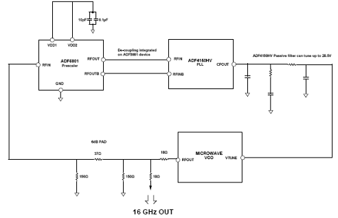 圖3.采用ADF4150HV的16GHz 微波PLL電路圖