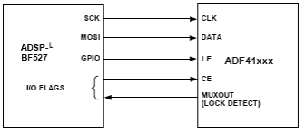 圖5. ADSP-21xx和ADF4150HV連接框圖