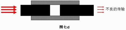 故障定位:d. 預(yù)置打磨光纖與切割光纖接續(xù)縫隙過大(圖七d)