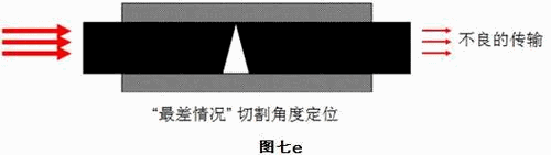 故障定位:e. 過偏的光纖切割角度(圖七e)