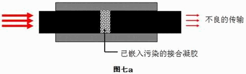 故障定位:c. 光纖的不良切割或折斷(圖七c)
