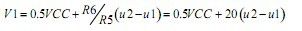 首先,把由兩個(gè)電感得到的感應(yīng)電動勢經(jīng)調(diào)理、放大后得到的電壓輸出u1和u2送入由運(yùn)放組成的減法器中進(jìn)行減法運(yùn)算,然后再經(jīng)由運(yùn)放組成的電壓跟隨器送給下一級電路。經(jīng)過分析,這一級電路的輸出大致可由下式進(jìn)行計(jì)算:
