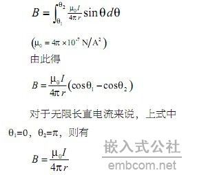 首先,由畢奧-薩伐爾定律知:通有穩(wěn)恒電流I長度為L的直導(dǎo)線周圍會產(chǎn)生磁場,距離導(dǎo)線距離為r處P點(diǎn)的磁感應(yīng)強(qiáng)度為: