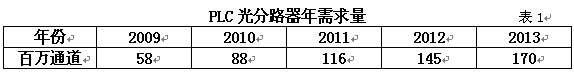 2.2 PLC(光分路器)產(chǎn)業(yè)情況
