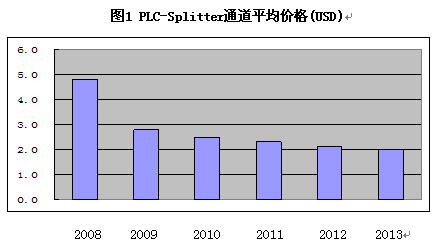 任何事物均有著兩面性,需求量的增大總是伴隨著產(chǎn)品價(jià)格的下降,由于國(guó)內(nèi)的大量器件封裝企業(yè)涌入這個(gè)市場(chǎng),再加上三大運(yùn)營(yíng)對(duì)PLC光分路器進(jìn)行集采,市場(chǎng)價(jià)格將會(huì)面臨下滑的趨勢(shì),隨著需求的不斷增大,價(jià)格將越來(lái)越低,代工企業(yè)和靠封裝企業(yè)的利潤(rùn)也將越來(lái)越薄。圖1給出了國(guó)際上PLC價(jià)格走勢(shì)。