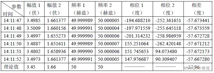利用“移相橋”電路進(jìn)行測(cè)試,在某一狀態(tài)下得到測(cè)量結(jié)果如下,與各參數(shù)的理論值相 比較略有誤差。其原因在于一方面數(shù)據(jù)在采集、傳送和轉(zhuǎn)換過程中不可避免的會(huì)產(chǎn)生各種噪 聲和干擾,外界的干擾也會(huì)侵入到系統(tǒng)中來,因此在數(shù)據(jù)的處理過程中,數(shù)字化測(cè)量將會(huì)造 成一定的誤差;另一方面信號(hào)的頻率應(yīng)該是確定的,但實(shí)際中會(huì)存在頻率偏差,這也是引起 相差測(cè)量不準(zhǔn)的原因。另外,器件所標(biāo)參數(shù)值與實(shí)際值之間也存在誤差,但不斷改良測(cè)量算 法和采用性能更加優(yōu)良的數(shù)據(jù)采集卡會(huì)取得更好的測(cè)量效果。