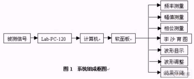本虛擬儀器采用美國 NI 公司的Lab-PC-1200 型數(shù)據(jù)采集卡,將其直接插入到計(jì)算機(jī)相 應(yīng)標(biāo)準(zhǔn)的總線擴(kuò)展插槽內(nèi)構(gòu)成PC-DAQ(Data Acquisition)插卡式虛擬儀器。主要測(cè)量?jī)蓚€(gè) 同頻正弦信號(hào)的幅值、頻率、相位差等。系統(tǒng)組成框圖如圖1 所示: