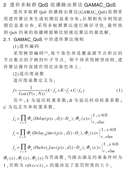 關鍵詞: QoS組播;遺傳算法;蟻群算法;多蟻群