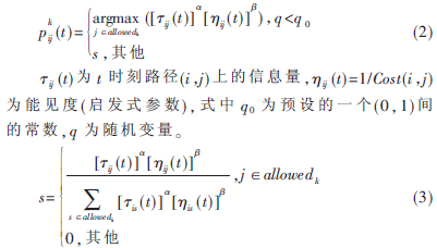 (2)路徑選擇策略[6]。全智能螞蟻M1,其選擇策略為: