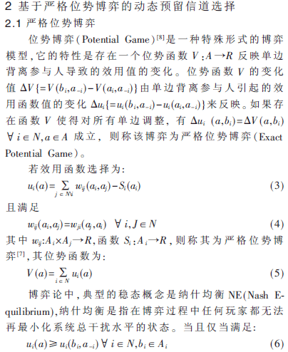 本文提出了一種基于嚴(yán)格位勢博弈的動態(tài)預(yù)留信道選擇方法,該方法用于在頻譜切換過程中以增加少量網(wǎng)絡(luò)總干擾為代價實現(xiàn)動態(tài)預(yù)留,解決了靜態(tài)式預(yù)留不滿足實際認(rèn)知網(wǎng)絡(luò)的問題。