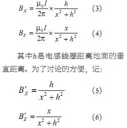 直接分析交變的電磁場(chǎng)并不是一個(gè)可取方法,考慮到問題的線度遠(yuǎn)遠(yuǎn)小于20kHz的電磁波波長(zhǎng),因此可以先討論直流的情況,然后將結(jié)果應(yīng)用到交變的條件下。問題可以簡(jiǎn)化為:載流導(dǎo)線中通過直流電流I,它在空間產(chǎn)生了靜態(tài)磁場(chǎng)B(x,y,z),電感線圈中的電壓有效值U正比于所在位置的磁感應(yīng)強(qiáng)度B(x,y,z)。
