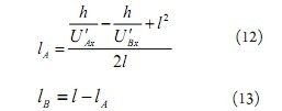 U'Ax、U'Bx在在物理上分別是A、B點(diǎn)的垂直傳感器感應(yīng)電壓的有效值除以(7)(8)式中的比例常數(shù)k,因此是解算算法中的已知數(shù)據(jù)。從(9)(10)式解算lA、lB就比較簡(jiǎn)單了,以下給出兩個(gè)算法: