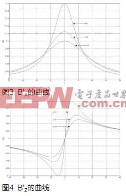 則B'X、B'Z分別和BX、BZ有相同的變化趨勢(shì)。圖3和圖4顯示了當(dāng)分別取5、8、10時(shí)B'X和B'Z的變化趨勢(shì)。由圖可知:(1)B'X是x的偶函數(shù),在Y軸兩側(cè)單調(diào);B'Z是x的奇函數(shù),在Y軸兩側(cè)沒有單調(diào)關(guān)系;(2)在相同的高度下,B'X幅值是B'Z的兩倍,但是在x=20的時(shí)候,B'X只有B'Z的一半左右了,因此B'X的衰減較B'Z快很多。綜上可推知,水平線圈比較適合做x的正負(fù)判別,垂直線圈比較適合用來解算x的具體數(shù)值,B'Z較B'X衰減慢得多,說明水平線圈對(duì)遠(yuǎn)處道路狀況相對(duì)比較敏感,可以用來預(yù)測(cè)前方的彎道。