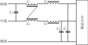 2)加裝開關(guān)電源濾波器,即在供電進(jìn)線處裝設(shè)抑制傳導(dǎo)干擾的開關(guān)電源濾波器。圖6為開關(guān)電源濾波器的線路圖。