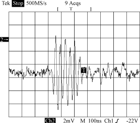 4)每次干擾電壓為幾個(gè)振蕩波形,振蕩周期為40ns。