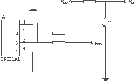 腳踏板控制器除了給出速度給定信號(hào)外,還要給出開(kāi)機(jī)和剪線(xiàn)信號(hào),其基本原理是利用與腳踏板連桿相連的兩塊擋板在適當(dāng)?shù)奈恢谜趽豕怆妼?duì)管的發(fā)射光,從而得到反映連桿位置的兩個(gè)開(kāi)關(guān)信號(hào)。