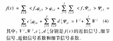 設(shè):{VJ}是一給定的多分辨率分析,φ(t),Ψ(t)分別為相應(yīng)的尺度函數(shù)和小波函數(shù),對"f(t)∈V0,有