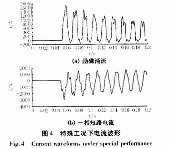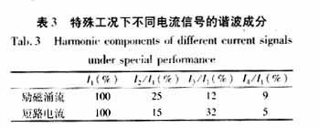 在某些特殊工況下,如有長線路串補電容的高壓系統(tǒng)及有高壓電纜的變壓器,其勵磁涌流和短路電流波形會發(fā)生畸變(圖4),其中短路電流中二次諧波的含量會增大,如表3所示。