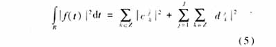 由多分辨率分析可知,同一尺度上的小波函數(shù)Ψj,k(t)與尺度函數(shù)φj,k(t)正交。根據(jù)Parseval定理,對于完備正交函數(shù)集應(yīng)滿足: