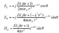 為球坐標,I為天線電流,l為天線長度,r為天線至場點的距離,w為角頻率,e0為空氣介電常數(shù),l為電磁波長。要減小H和E,可以減小I、l,或增大r。