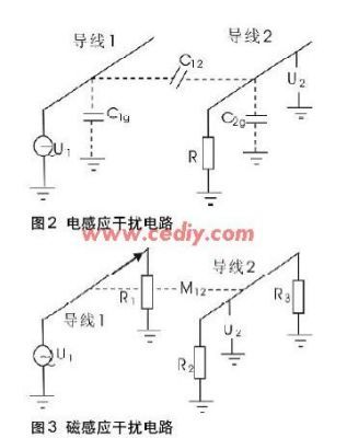 ,要減小U2可以減小C12、U1和R,或增大C2g;首要措施是減小C12,方法是增大導(dǎo)線距離或改變導(dǎo)線間介電參數(shù)。對磁感應(yīng)電路,,要減小U2,可以減小M12或減小I1變化率,基本措施是減小M12,對典型的兩回路,